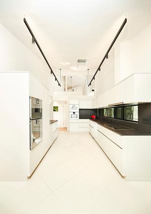 This kitchen in Edwardsville, IL updated the space for a modern style home and for a family who loves the minimalistic look. Spencer Homes Remodeling widened the sliding door to create additional space for cabinetry and added additional windows along the outside wall which allowed additional natural light to shine in between the new base and upper cabinets. The new Pella “Contemporary Series” window unit was over 11.5 feet long and had a “Black Enduroclad” exterior with a “Black” interior finish. The cabinets were custom-built by McCillan Cabinet Makers and included built-in LED strip lighting, Gola recessed built-in hidden channel-pull handles, specialized 2-piece lift-doors on the upper cabinets as well as a large volume of customized pull-out storage solutions. The custom cabinet color “Cashmere Grey”, creates a striking contrast to the Dekton “Sirius” colored countertops and solid Dekton backsplash. The flooring is also a contrast point using 24” x 24” Porcelanosa-Neo White Natural tile with Sterling colored grout installed in a Diagonal pattern. The pantry door was originally a bifold door, but the family asked for it to be turned into a pocket-door with a slow-close feature. Other features of the kitchen include special ordered “Flos” up-down LED track lighting, a Kohler Cairn Neoroc Black undermount sink, and a MGS Spin kitchen faucet. Specialty appliances included a Gaggenau wall oven, steam oven, full surface induction cooktop, microwave, and built-in espresso coffee machine. Then featuring seamless looks the kitchen is equipped with a panel-ready Sub-Zero appliances including a single-door column refrigerator, a 30” freezer drawer, a built-in under counter ice maker, and in the pantry a Sub-Zero wine-fridge with a 59-bottle storage capacity. Overall, this amazing kitchen is a sight to behold and perfectly fits both the style of the home and the client’s lifestyle.
